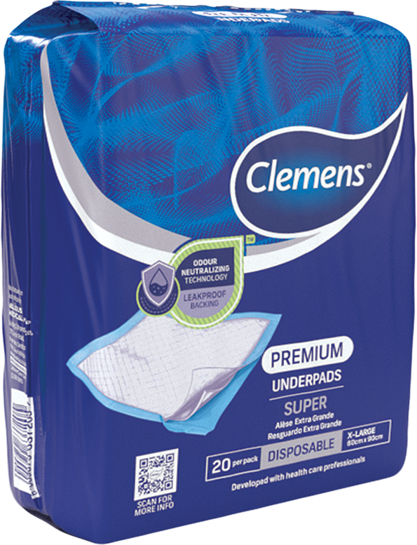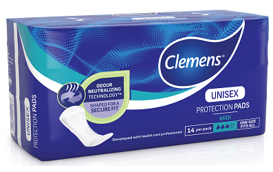 Anatomically Shaped Clemens Light Incontinence Pads with Cotton Feel & Adhesive Strip